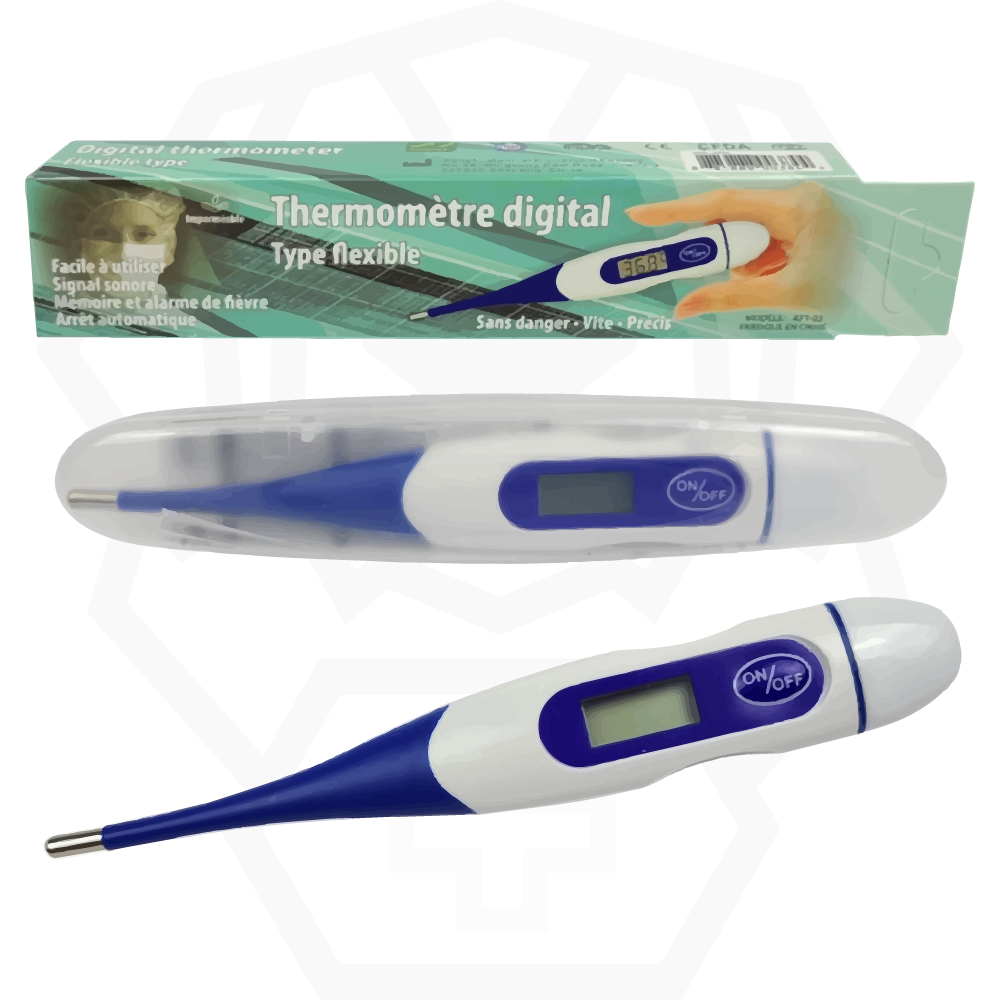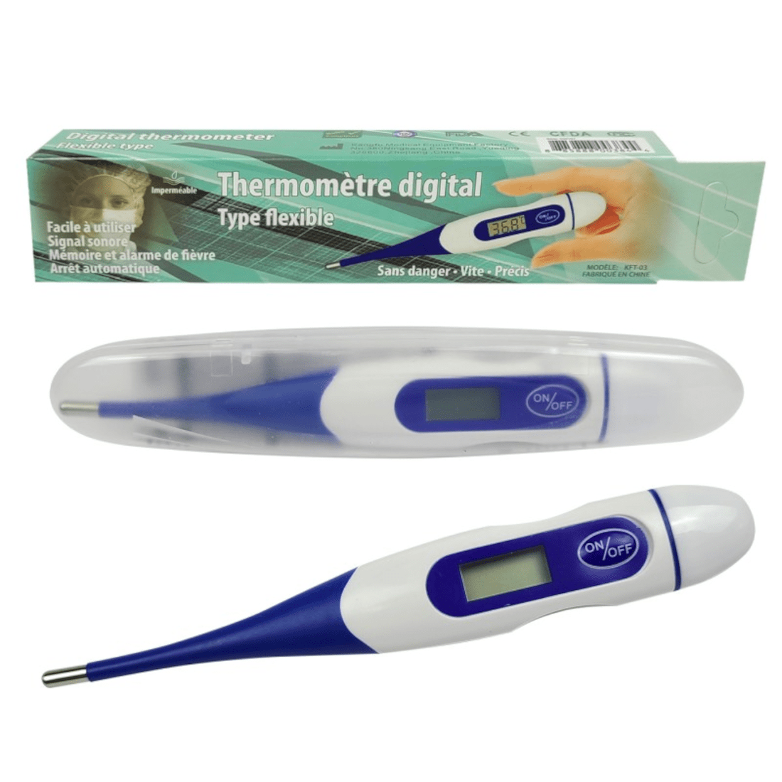 Le thermomètre digital avec embout flexible est un outil essentiel pour prendre la température axillaire de manière précise et efficace. Ce thermomètre est conçu pour offrir des mesures rapides et fiables, ce qui en fait un choix idéal pour les professionnels de la santé ainsi que pour une utilisation à domicile.